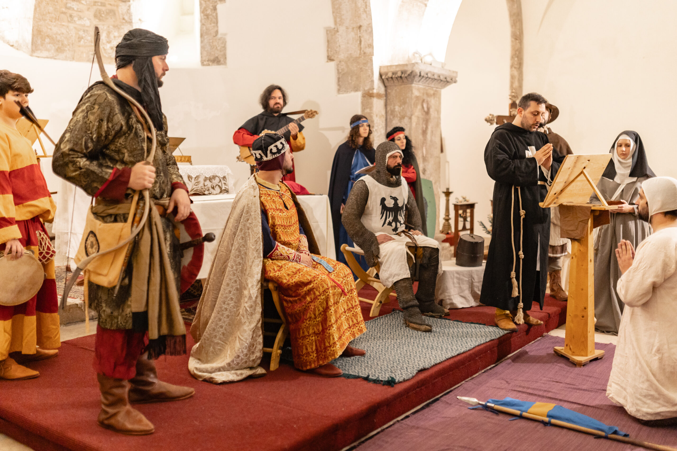 Il percorso di divulgazione sarà inoltre scandito da momenti performativi di alto valore evocativo, concepiti come strumenti di narrazione della memoria collettiva. Tra questi, particolare rilievo sarà dato alla cerimonia di investitura di un cavaliere, ricostruita fedelmente sulla base delle fonti documentarie e iconografiche superstiti. Tale attività permetterà agli spettatori di comprendere i complessi rituali e i codici d’onore dell’élite militare sveva, garantendo un’esperienza culturale rigorosa e scientificamente attendibile.