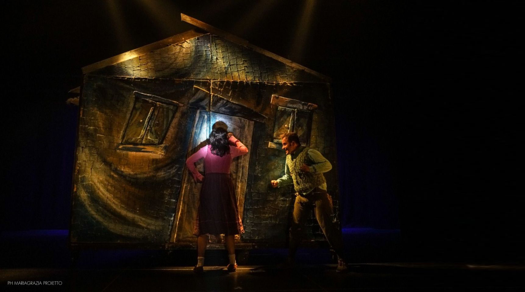 Questa storia, per la regia di Michelangelo Campanale, ruota attorno alla figura ambigua di una donna affascinante, forse una strega, che inganna e divora i bambini. Tutto si trasforma – il bosco, la casa, i sassolini – suggerendo che nulla è come sembra. In tempi di crisi economica, questa fiaba diventa attuale perché racconta della paura di non avere abbastanza, dell’illusione dell’abbondanza e dell’importanza di imparare a distinguere, a scegliere, a conquistare.