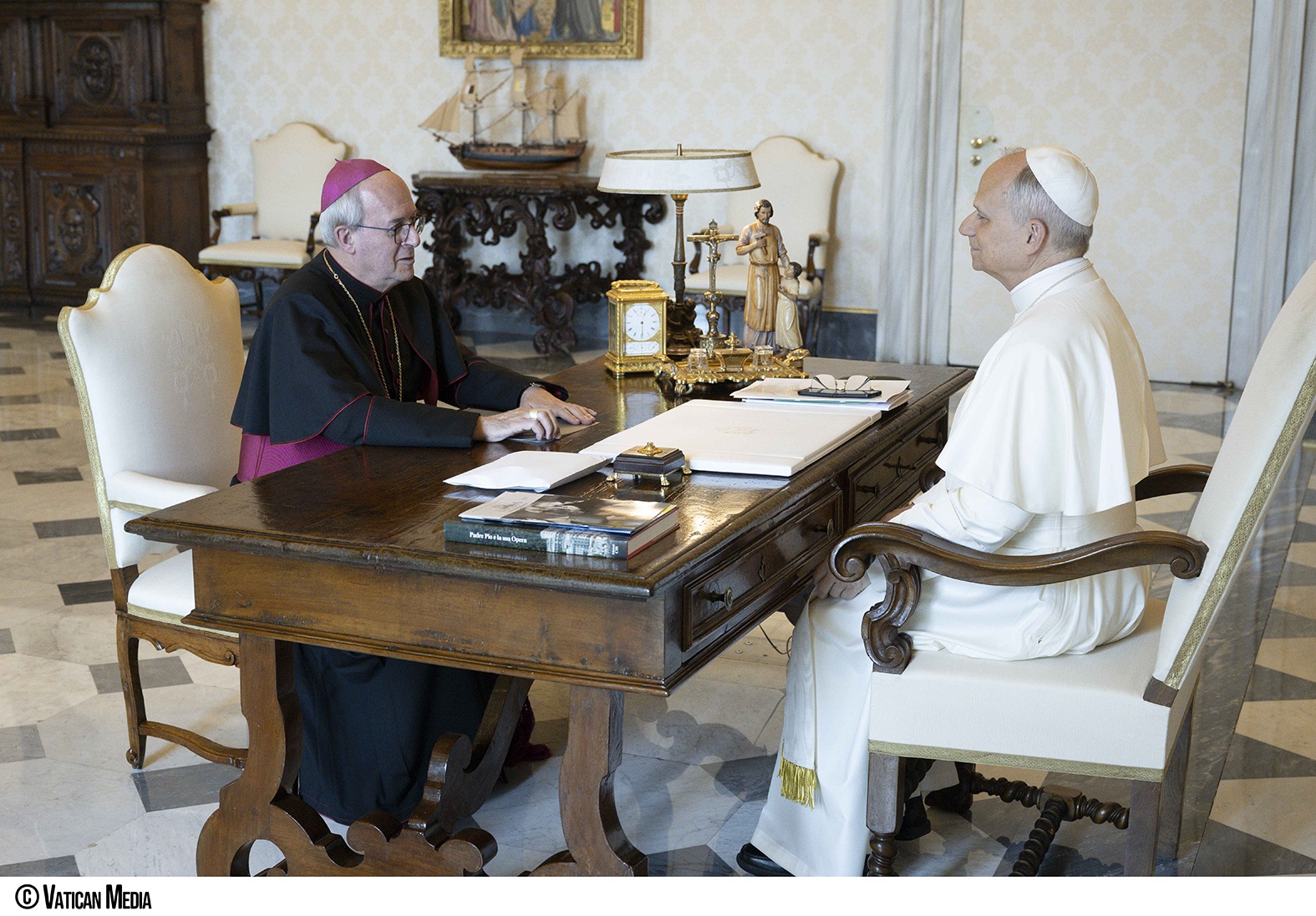 Al termine dell’incontro, durante il tradizionale scambio dei doni, il presidente di Casa Sollievo della Sofferenza ha donato al Santo Padre la pubblicazione “Padre Pio e la sua Opera”, la copia della rivista “La Casa Sollievo della Sofferenza” dedicata all’elezione a pontefice del cardinale Robert Francis Prevost e una statua bronzea del Santo.