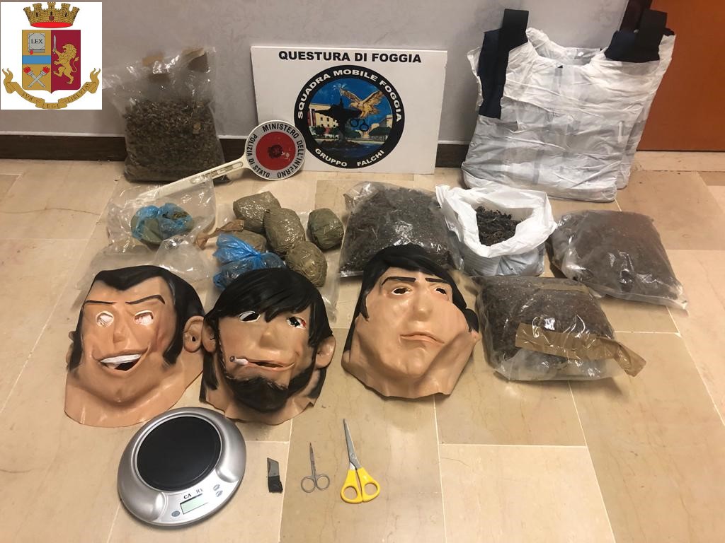 In tale contesto operativo, è stato tratto in arresto D. L., pregiudicato classe 91, colto nella flagranza di reato di detenzione ai fini di spaccio di sostanza stupefacente del tipo marijuana. In particolare la stessa, quantificata in 1,750 kg e suddivisa in più buste termosaldate, è stata rinvenuta all’interno di un borsone accuratamente celato nell’abitazione del predetto. La perquisizione domiciliare ha permesso altresì di rinvenire e sequestrare a carico del D.L. materiale utile per il confezionamento, bilancini di precisione, nonché maschere utilizzate per il travisamento e un giubbotto antiproiettile.