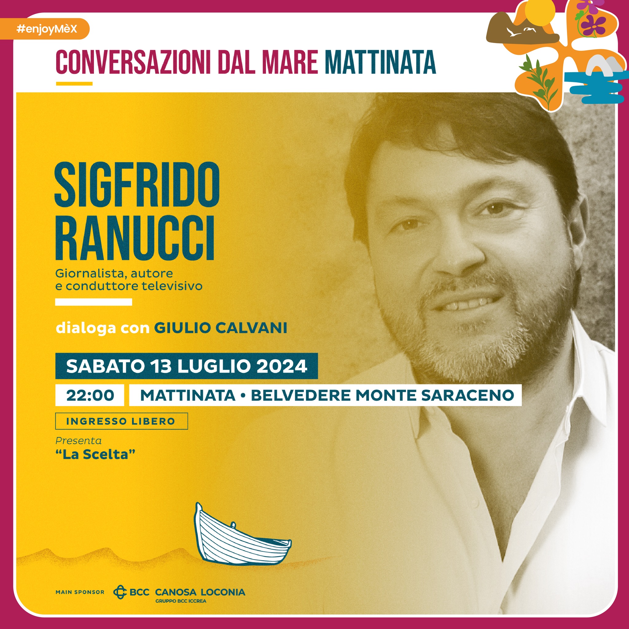 L’edizione garganica di Conversazioni dal mare si concluderà con la consegna del Premio Conversazioni dal mare a Sigfrido Ranucci per “il suo quotidiano impegno nel far emergere, con linguaggio chiaro e diretto, le tante distorsioni presenti nel nostro Paese, interpretando al meglio il senso stesso del servizio pubblico”.