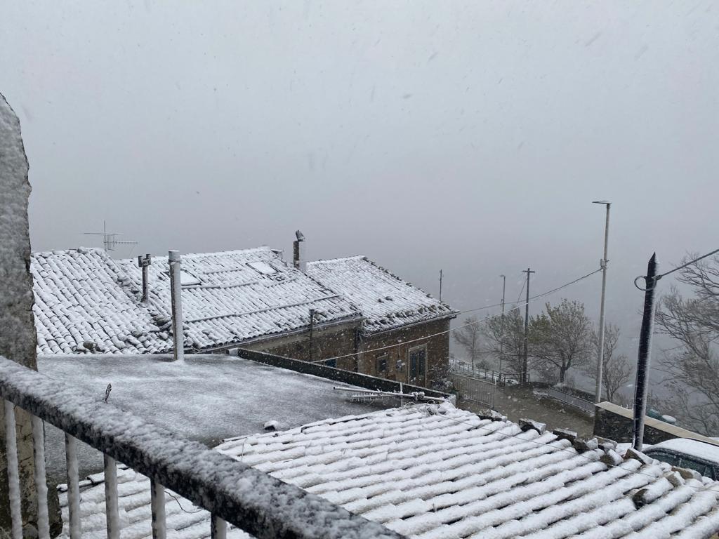 Qui siamo ad Alberona, dove in poco più di mezz’ora la neve ha imbiancato tutta la montagna e si è posata sui tetti.