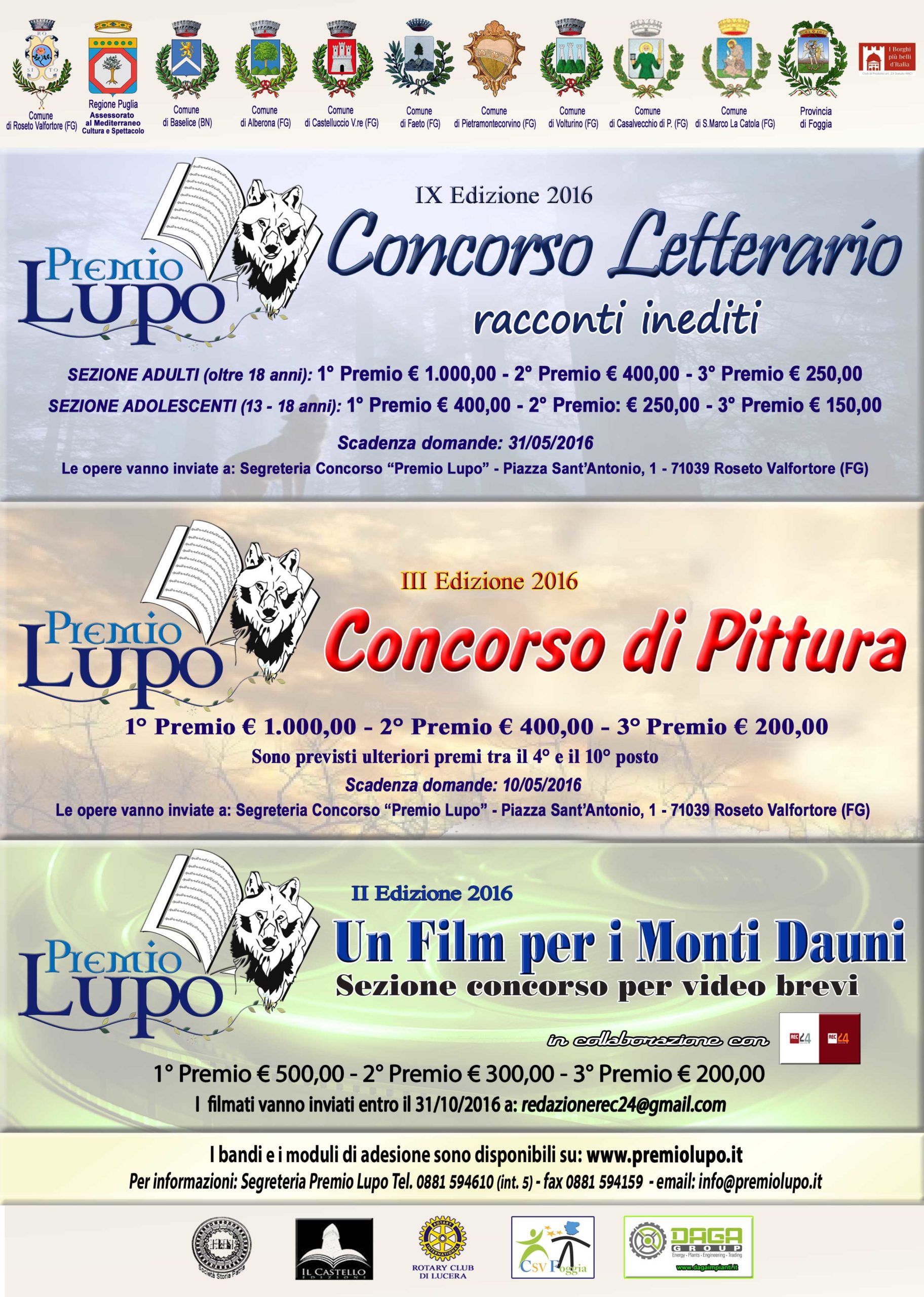L’edizione 2016 del Premio Lupo è già in corso. Sul sito ufficiale, sono stati pubblicati i bandi per l’anno in corso e possono essere scaricate anche le relative domande di iscrizione ai tre concorsi previsti: letterario, pittorico, realizzazione di brevi video da 60 secondi.