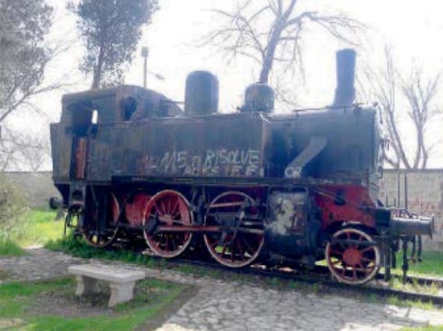 Da tempo circola l’idea di spostare la vecchia locomotiva nell’aiuola vuota posizionata all’inizio del Terminal dei bus in piazza Vittorio Veneto, affianco alla stazione ferroviaria. Sarebbe forse un luogo più dignitoso, di certo un luogo meno esposto alla furia dei vandali che hanno devastato la locomotiva con varie scritte e con il furto dei fanali, dei manometri di ottone sistemati al posto di guida e della targa di bronzo sui cui erano incisi in nome della ditta costruttrice, l’anno di costruzione e il codice numerico della locomotiva. Vandalizzata e deturpata pure la lapide posta nei pressi. Negli anni la locomotiva è diventata anche il rifugio occasionale di numerosi senzatetto. Una devastazione che fa il paio con quella operata dagli agenti atmosferici, che hanno letteralmente mangiato interi pezzi di lamiera, lasciando buchi pieni di ruggine. Il degrado del monumento non è recente. È da almeno dieci anni che è in condizioni che definire pessime è un eufemismo. Abbandonata dall’Amministrazione comunale, potrebbe essere reclamata dalle Ferrovie dello Stato, in quanto la locomotiva è stata regalata al Comune di Foggia ma solo affidata in comodato.