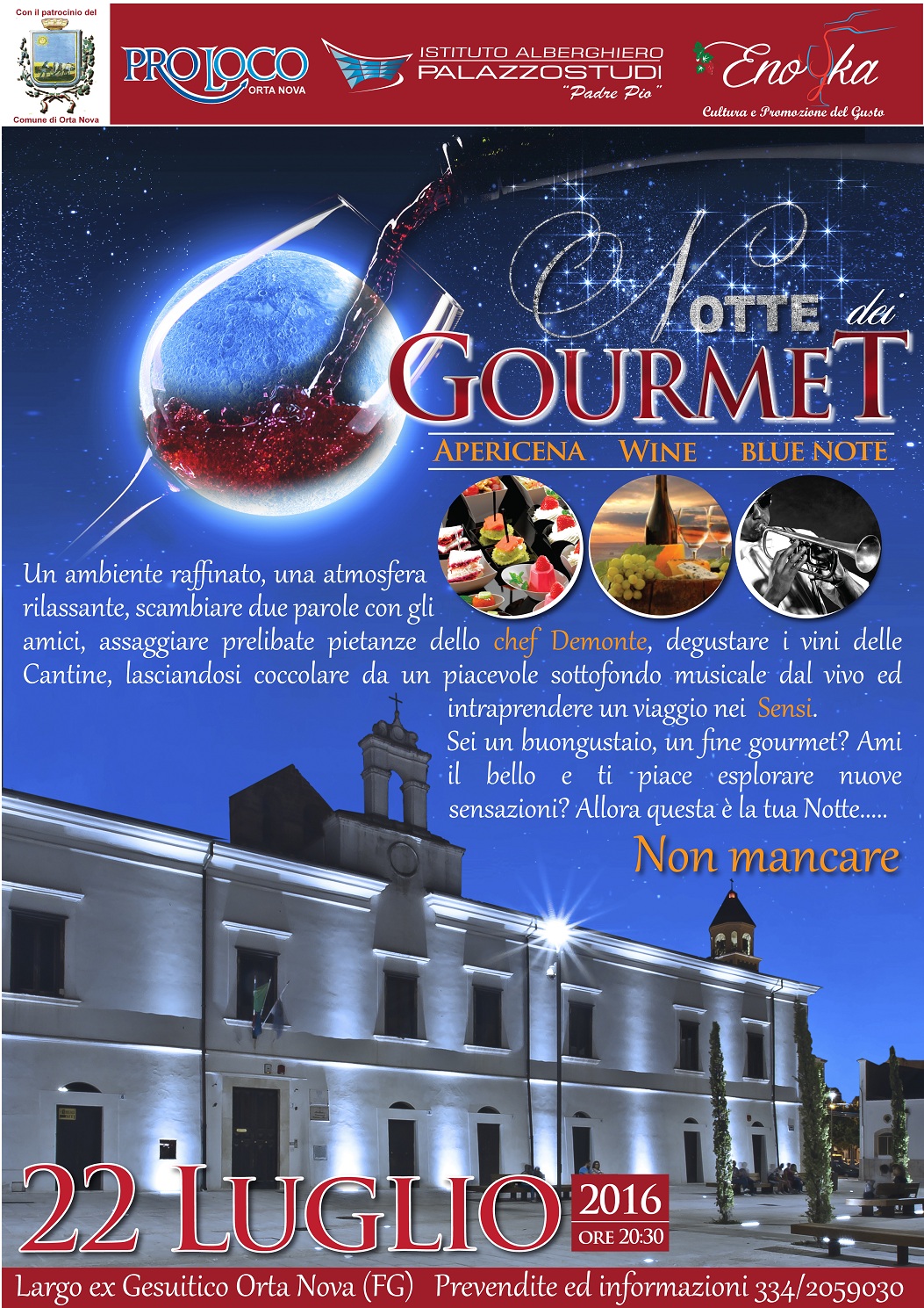 Venerdì alle ore 21.00, si terrà la prima edizione de la “Notte dei Gourmet” nel suggestivo Largo ex Gesuitico della città di Orta Nova.