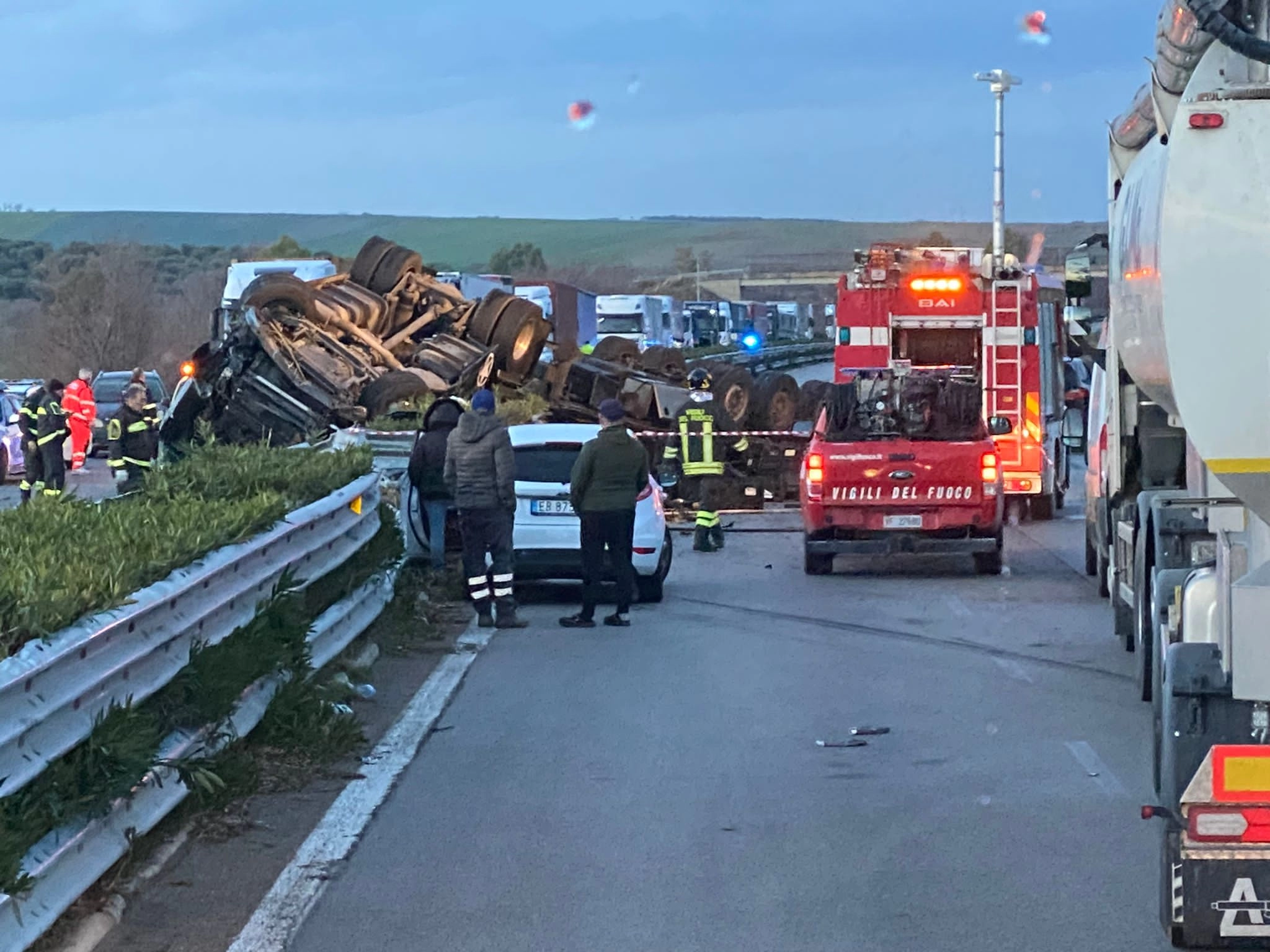 Pauroso incidente sulla Foggia-Candela: Tir si ribalta e invade carreggiata opposta