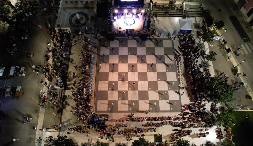 Il match è stato un combattuto testa a testa tra Scarpetta e Ciampi, terminato – come spesso avviene tra i grandi – in parità. Ogni mossa è stata riprodotta sulla damiera di piazza Principe Imperiale dai bambini del paese che, precedentemente, sono stati iniziati al gioco della dama, lo sport della mente. “Siamo qui per la Dama Vivente, importante manifestazione che viene riproposta e aperta ai bambini, che sono il futuro di tutto e anche della nostra federazione”, ha spiegato il GM° Claudio Ciampi. “Come FID, facciamo un lavoro enorme nelle scuole e nei circoli, un lavoro che ci ha portato ad avere oltre 40mila giovanissimi tesserati, molti dei quali gareggiano con ottimi successi in Italia e in Europa. Anche qui cercheremo di seminare i valori della dama: magari il prossimo campione verrà fuori proprio da questo paese”.