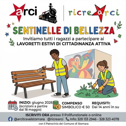 Di cosa si tratta nello specifico? Il progetto “Sentinelle di bellezza” prevede lo svolgimento di lavoretti estivi di cittadinanza attiva (azioni di decoro urbano, manutenzione e valorizzazione degli spazi comuni). “E’ un modo per riscoprire il senso di appartenenza e la bellezza della nostra comunità, realizzando azioni concrete aldilà dello schermo dei social”, sottolineano i membri di ARCI.