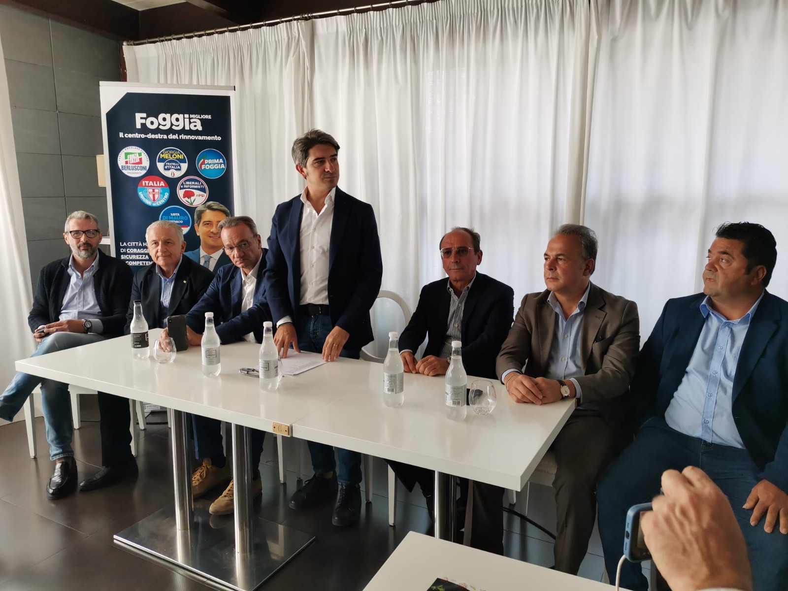 Accanto a lui l’On. Giandonato La Salandra, deputato foggiano di Fratelli d’Italia, l’On. Giandiego Gatta, parlamentare di Forza Italia, il Vicepresidente del Consiglio regionale della Puglia, Giannicola De Leonardis, di Fratelli d’Italia, il Consigliere regionale di Forza Italia Paolo Dell’Erba, il Segretario cittadino della Lega e rappresentante della lista “Prima Foggia”, Antonio Vigiano, e il Segretario cittadino del Nuovo PSI, rappresentante della lista “Liberali e Riformisti – nPSI” Daniele Tucci.