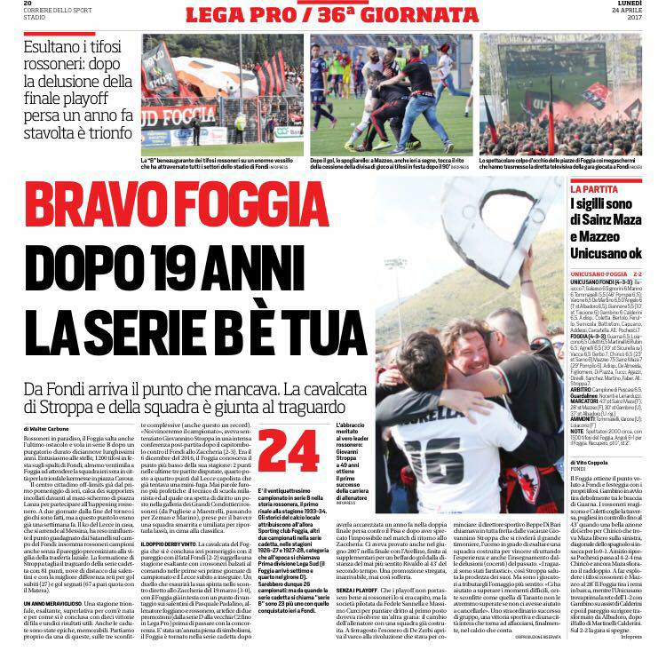 Rassegna stampa. Il Foggia in B sui quotidiani nazionali