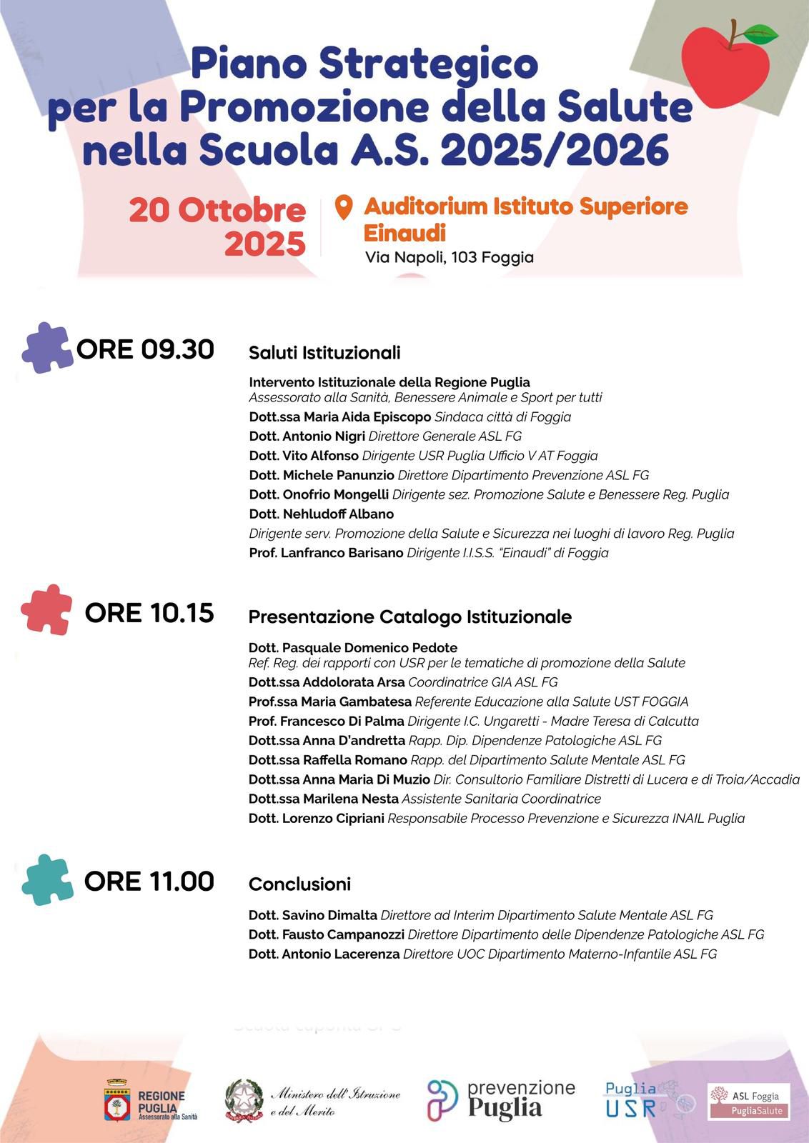 – Nehludoff Albano Dirigente Promozione della Salute e Sicurezza nei luoghi di lavoro Regione Puglia
