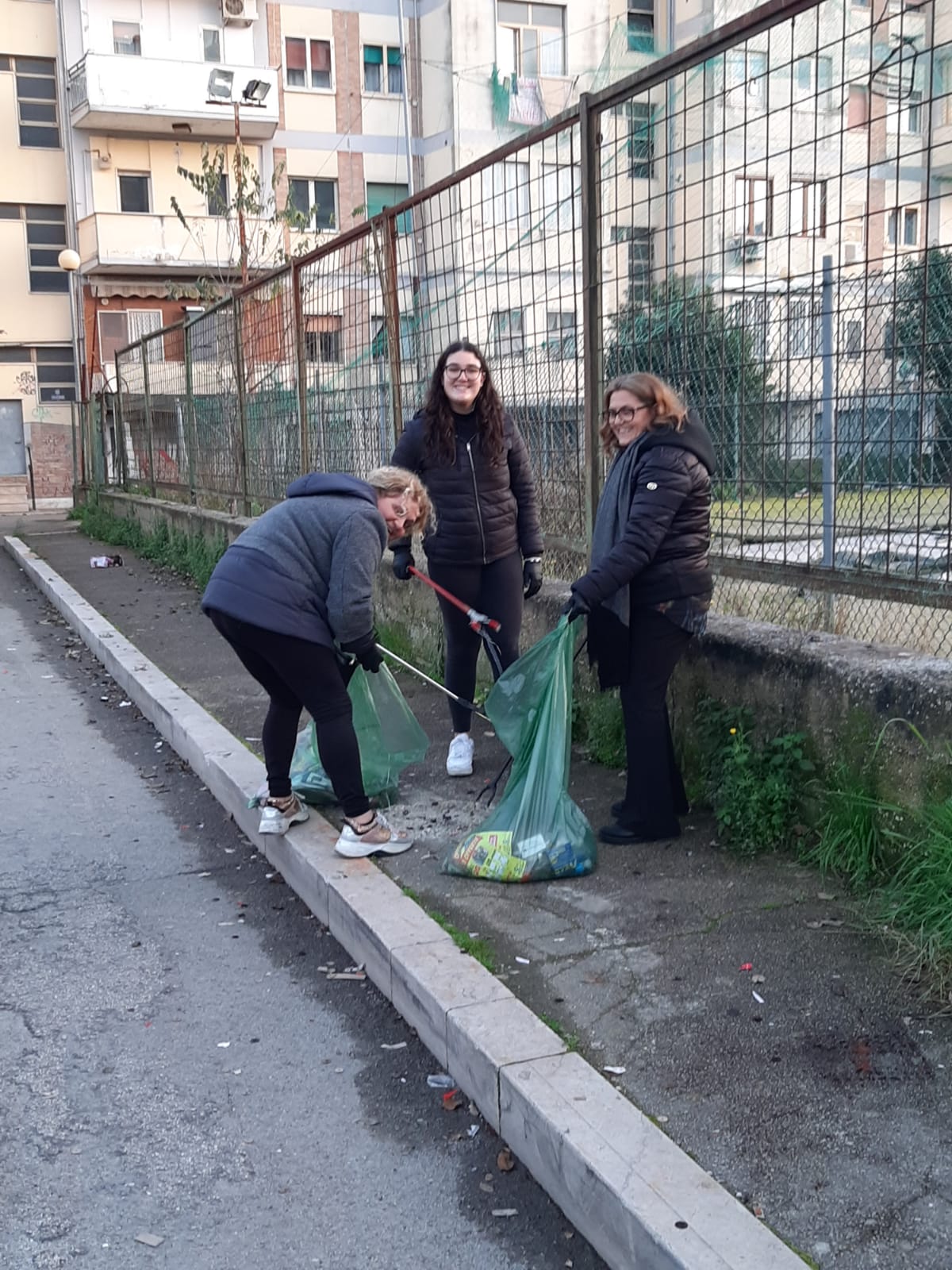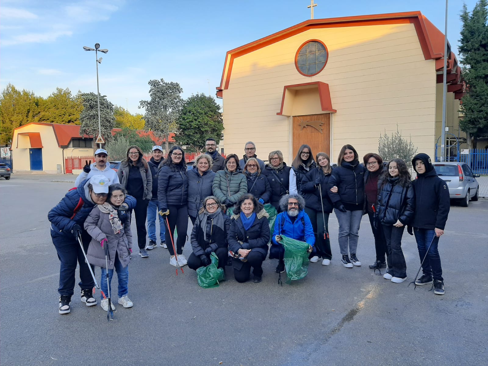 Ripuliscono il rione San Pio X a Foggia, volontari con il gruppo di catechismo. La via della felicità