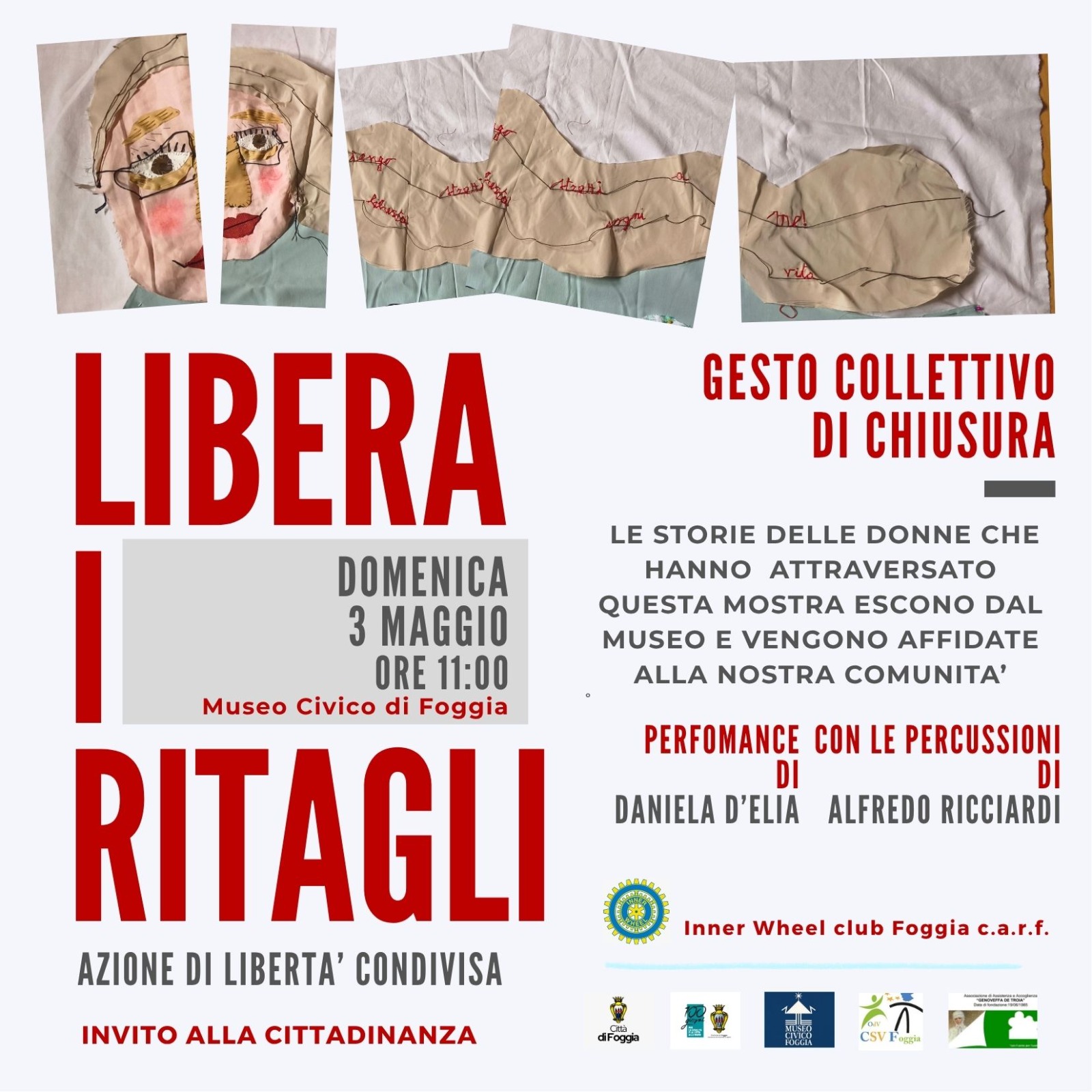 Dopo il grande successo di pubblico e partecipazione registrato nelle scorse settimane, la mostra “Ritagli di libertà” di Daniela d’Elia si prepara a vivere il suo momento conclusivo con un evento aperto alla città. Domenica 3 maggio, alle ore 11.00, presso il Museo Civico di Foggia, si terrà il “gesto collettivo di chiusura”, un appuntamento simbolico e partecipato che invita tutta la cittadinanza a essere protagonista.
