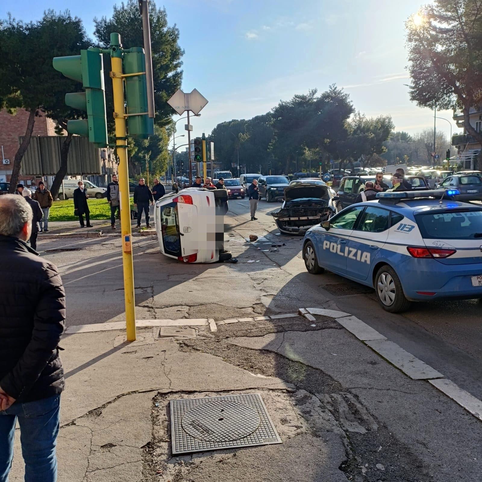 Questa mattina a Foggia un violento Incidente in viale Ofanto, L’auto si ribalta dopo un violento impatto.