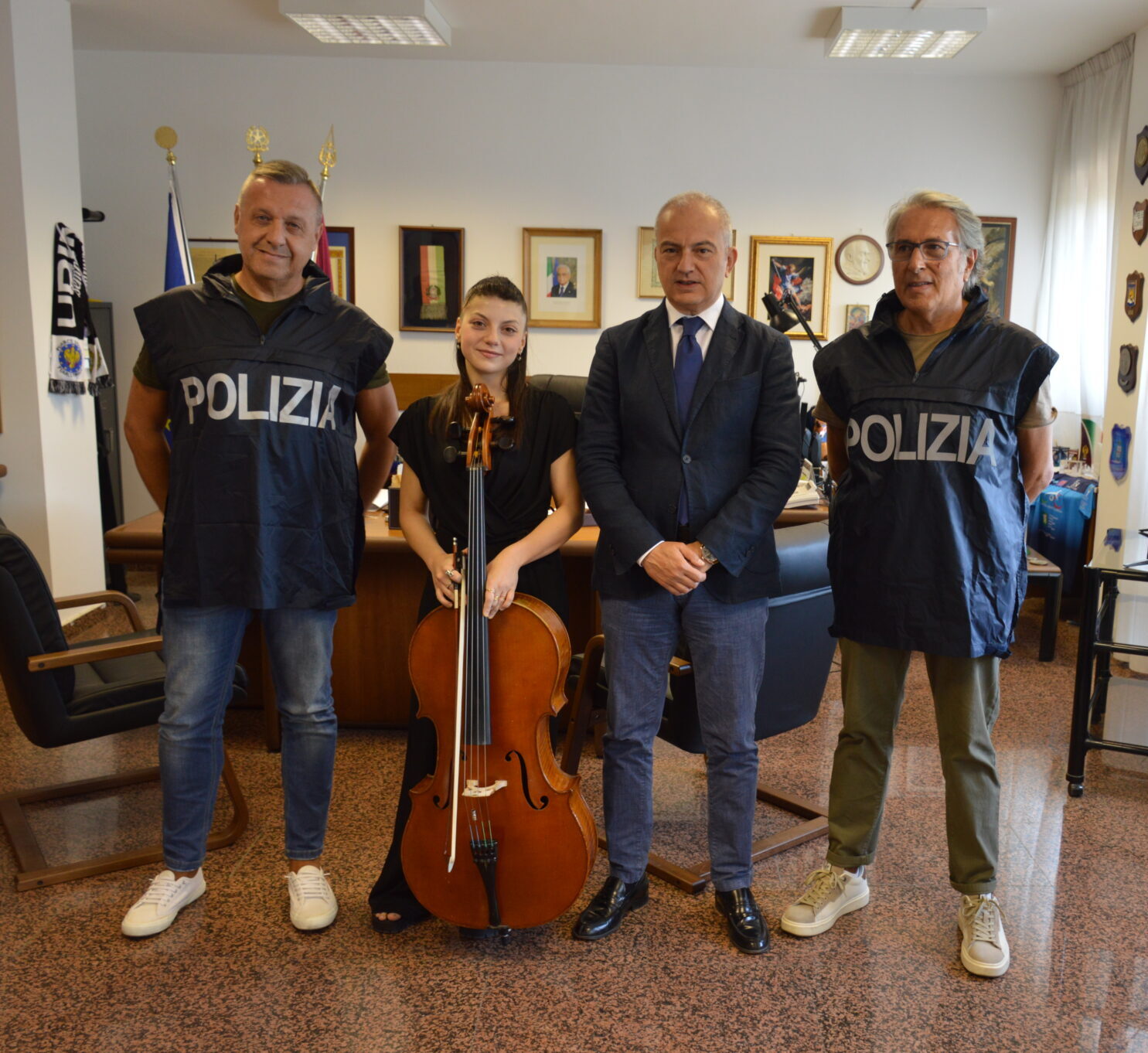 Grazie alla prontezza della squadra mobile di Foggia, in particolare della sezione “Falchi”, e alla collaborazione della ragazza, il violoncello è stato recuperato in meno di 24 ore. La restituzione, avvenuta in Questura alla presenza del questore Alfredo D’Agostino, è stata accompagnata da momenti di forte emozione. La Polizia ha augurato a Francesca, la giovane musicista, di poter realizzare i suoi sogni anche grazie al ritrovato strumento.