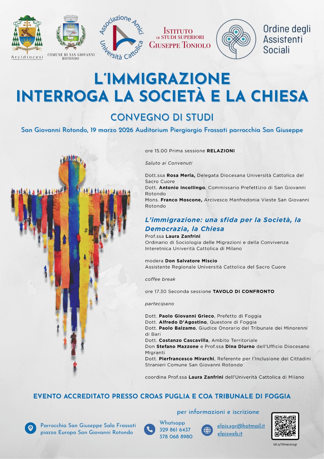 L’evento, accreditato presso il CROAS Puglia e il COA del Tribunale di Foggia, ha visto un parterre di ospiti illustri. Dopo i saluti della dottoressa Rosa Merla (delegata diocesana università Cattolica), del dottor Antonio Incollingo (commissario prefettizio) e di Monsignore Franco Moscone, la prima sessione è stata affidata alla professoressa Laura Zanfrini, dell’università Cattolica di Milano, che ha delineato le sfide sociologiche del fenomeno migratorio.