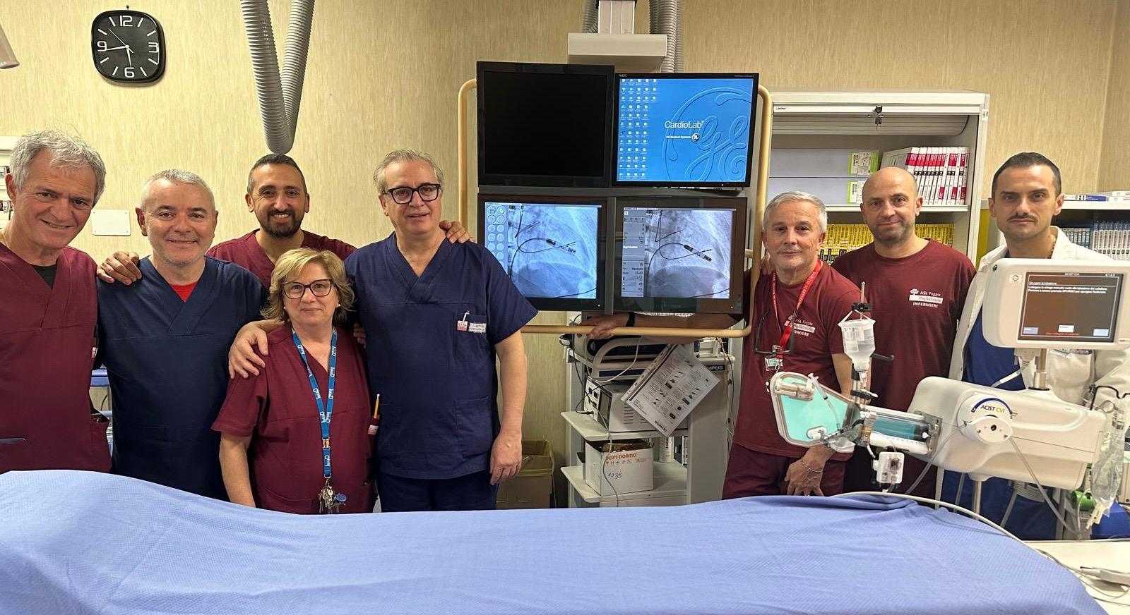 L’intervento è stato eseguito dall’equipe del Servizio di Cardiologia Interventistica del Presidio Ospedaliero di San Severo, coordinata dal Direttore Vito Sollazzo e dai Dirigenti medici Salvatore Leccisotti e Andrea Corlianò e composta dall’infermiere con incarico di funzione organizzativa Davide Nardella, dagli infermieri Carmela Costantino, Giuseppe Martino, Gianluca Napolitano e Davide Pizzolo e dall’infermiere e tecnico sanitario di radiologia medica Angelo Grana.