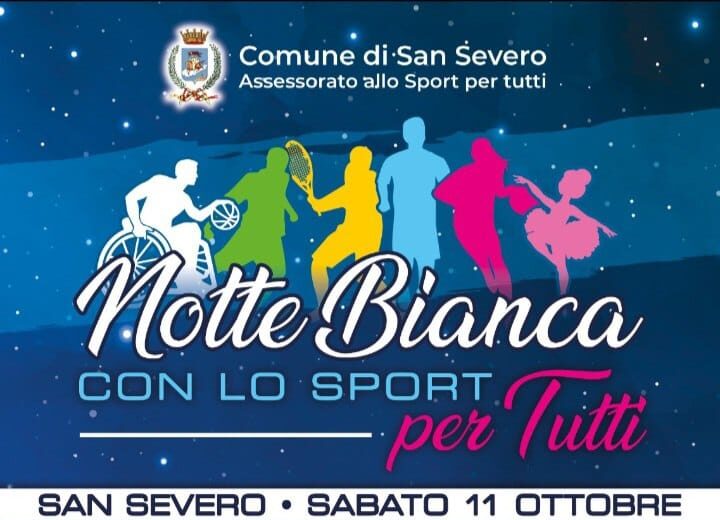 “E’ un’intera serata all’insegna dello sport, del sano divertimento e della partecipazione collettiva – dichiarano il Sindaco Lidya Colangelo e l’Assessore allo Sport Gigi Marino -. Questi sono gli elementi che caratterizzano la “Notte Bianca con lo Sport per Tutti”: la manifestazione coinvolgerà l’intero centro cittadino, con dimostrazioni sportive, performance artistiche e musica dal vivo. Protagoniste della serata saranno le associazioni sportive dilettantistiche della città, scuole di danza, musicisti itineranti e artisti di strada, in una grande festa che celebra lo sport, il movimento e la socialità. Vogliamo offrire alla città una serata di festa, inclusione e valorizzazione delle realtà sportive locali. La Notte Bianca sarà un’occasione per vivere San Severo in modo diverso, con entusiasmo e partecipazione. Un evento aperto a tutti, dove ogni angolo della città si trasformerà in uno spazio da vivere, tra sport, arte e musica”.