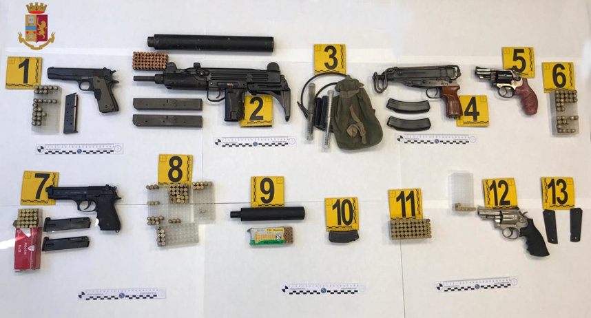 Facendo seguito al precedente comunicato inerente all’Ordinanza di custodia cautelare emessa dal G.I.P. del Tribunale di Bari, su richiesta della Direzione Distrettuale Antimafia del capoluogo, eseguita dalla Polizia di Stato nei confronti di otto persone, tutte residenti a San Severo, ritenute – allo stato del procedimento – gravemente indiziate, a vario titolo, del reato di detenzione e porto illegale di armi da fuoco aggravato dal metodo mafioso, omessa denuncia di reato da parte di pubblico ufficiale e favoreggiamento personale, si specifica che nel corso della fase esecutiva, personale dalla Squadra Mobile di Foggia, presso l’abitazione di uno degli indagati ha rinvenuto diverse armi, anche da guerra, aventi matricola abrasa, parti di armi e munizioni, sulle quali sono in corso i necessari accertamenti tecnici.