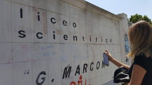 Questa mattina al Liceo Scientifico “G. Marconi”, durante l’assemblea d’istituto, le studentesse e gli studenti della scuola hanno coperto le numerose scritte inneggianti al fascismo comparse qualche giorno fa sui cancelli dell’istituto.