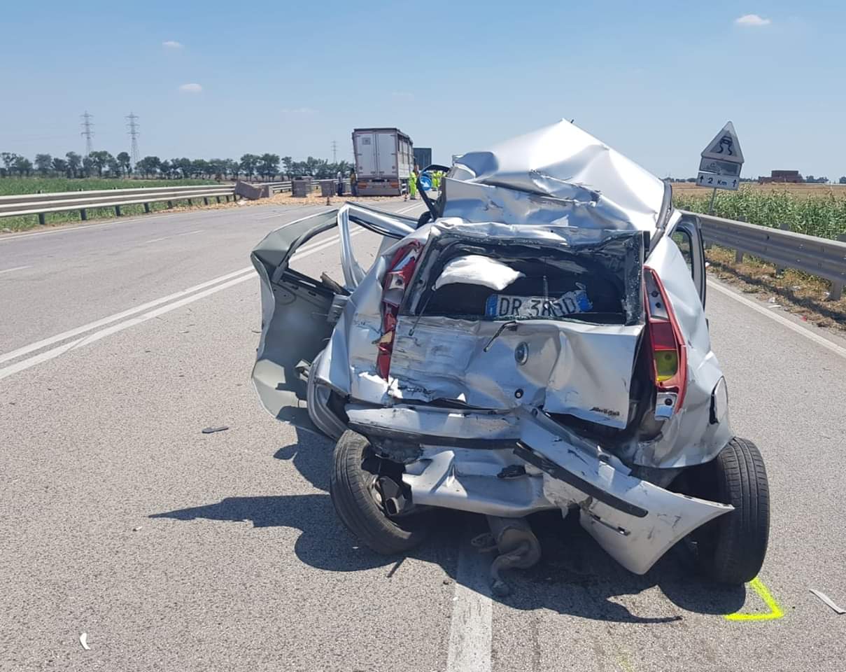 Nel terribile impatto sono rimasti coinvolti un TIR ed una Fiat Punto che percorrevano la circonvallazione di Foggia in direzione di Bari.