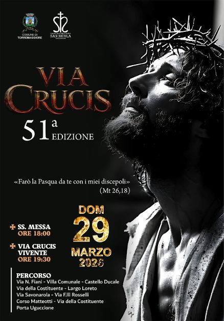 Torremaggiore si prepara a vivere uno degli appuntamenti più sentiti e coinvolgenti del proprio calendario religioso e culturale: domenica 29 marzo 2026 andrà in scena la 51ª edizione della Via Crucis Vivente. Nel tempo la rappresentazione sacra è diventata espressione autentica della devozione popolare e della memoria collettiva.
