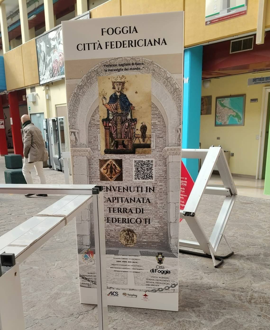 Mentre il progetto dedicato all’imperatore Federico II di Svevia prosegue negli istituti scolastici di Foggia, in alcuni punti della città sono comparsi dei totem che-attraverso un QRCode– informa in lingua inglese ed italiana circa la presenza di Federico II nel territorio della Capitanata.