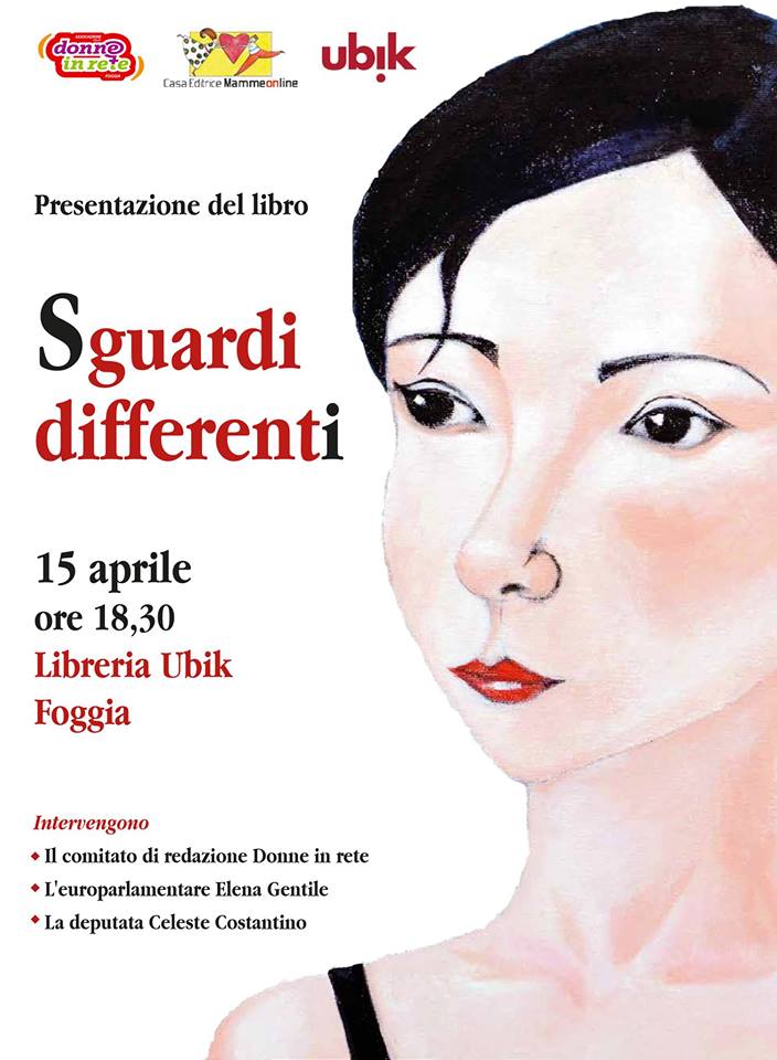 Appuntamento alla liberia Ubik di Foggia con una riflessione su sessismo e gender: venerdì 15 aprile, alle 18:30, sarà presentato il libro Sguardi differenti (Mammeonline, casa editrice di Donatella Caione). L’evento è organizzato dall’associazione “Donne in rete” di Foggia: interverranno anche l’europarlamentare Elena Gentile e la deputata Celeste Costantino.
