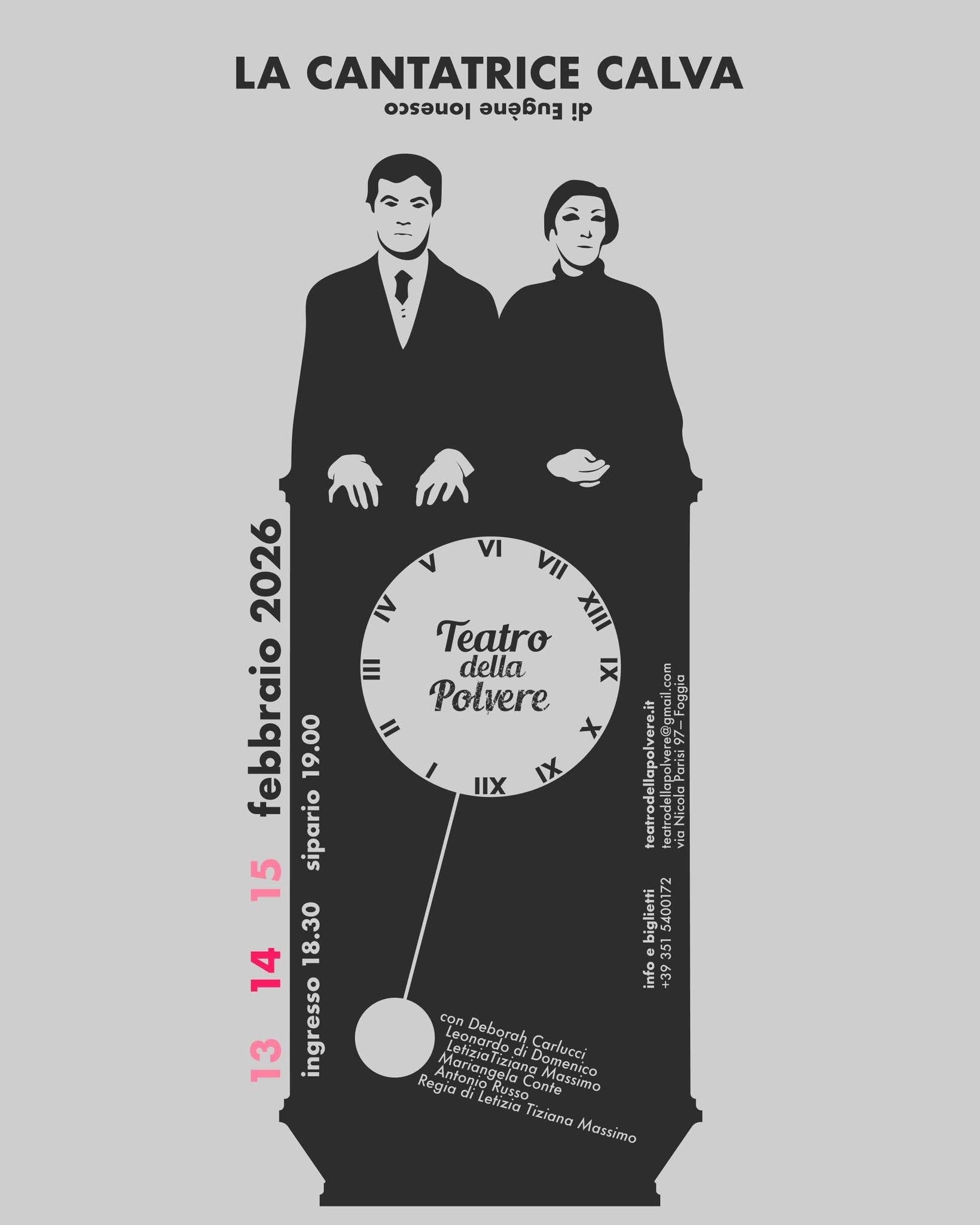 La messinscena proposta dal Teatro della Polvere restituisce con rigore e precisione il ritmo implacabile del testo, valorizzandone il dispositivo comico e la forza destabilizzante, in un equilibrio sottile tra fedeltà all’opera e sensibilità contemporanea.