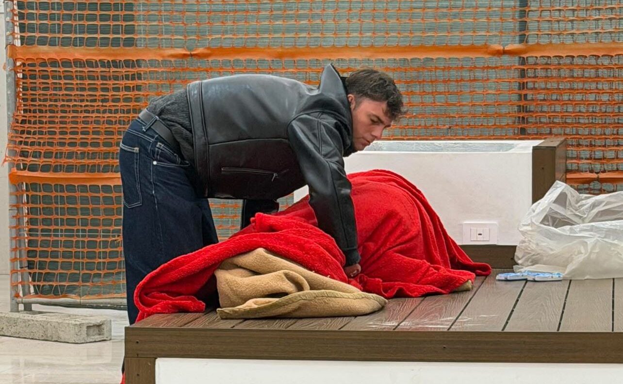 Alla stazione di San Severo, un giovane si china per coprire con una coperta un senzatetto che dorme sul marmo freddo. Nessuna telecamera, nessuna scena: solo umanità.