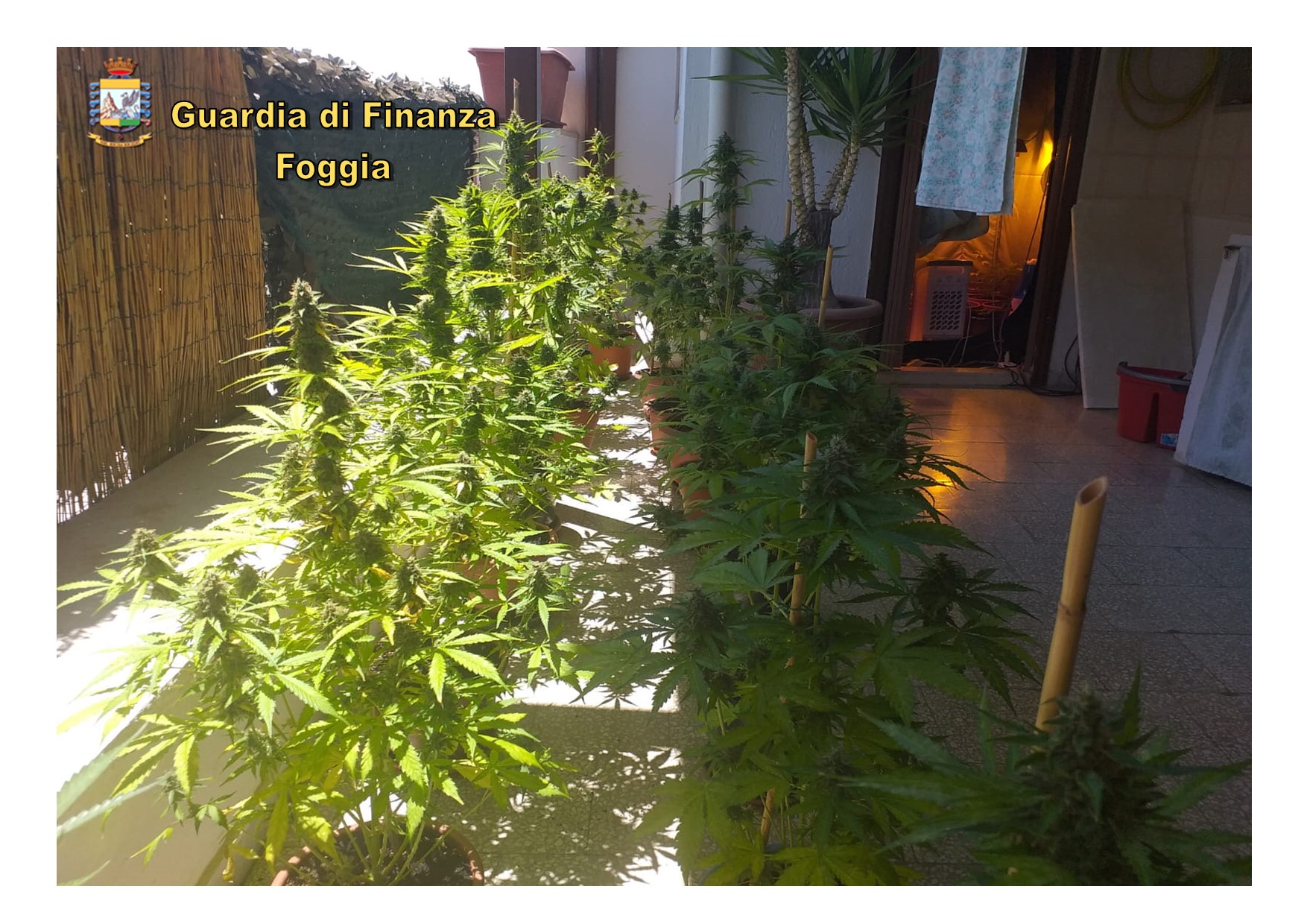 Sul terrazzo dell’abitazione, esposte alla luce solare, le Fiamme Gialle hanno rinvenuto altre piante di marijuana, in piena fase vegetativa, alte circa un metro e arbusti in fase di essiccazione.