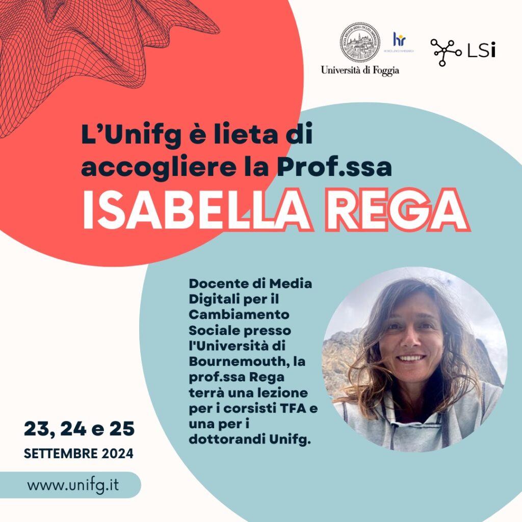settembre 2024 la Prof.ssa Isabella Rega, professoressa di Media Digitali per il Cambiamento