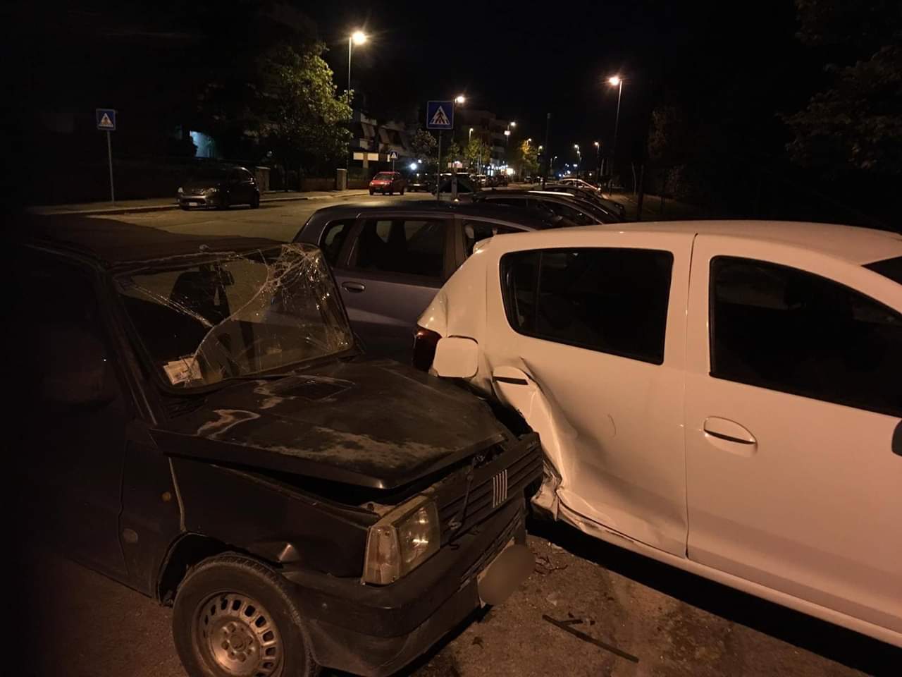 Alcuni soggetti a bordo di una vecchia Fiat Panda, risultata poi essere rubata, si sono schiantati contro due auto in sosta.