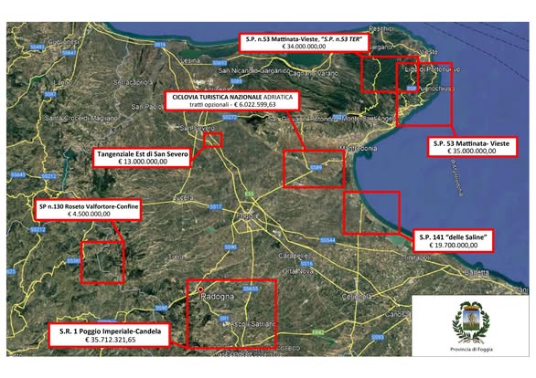 - Sistemazione funzionale della S.P. n.53 Mattinata–Vieste – € 35.000.000,00