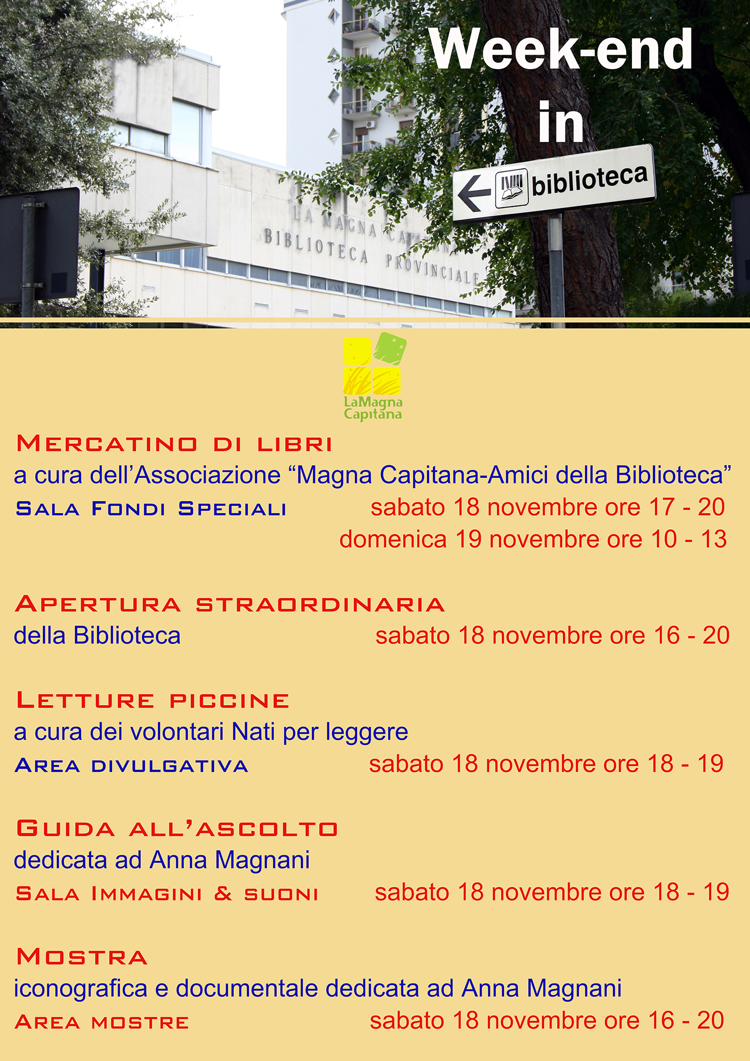 Il mercatino è organizzato dall’Associazione “Magna Capitana – Amici della Biblioteca.